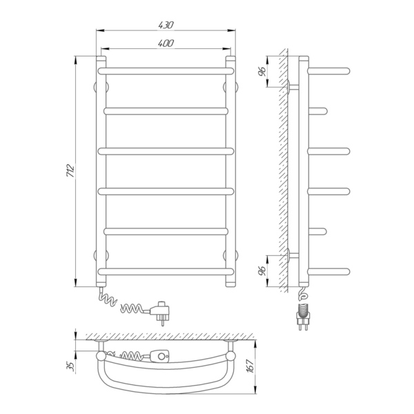 Електричний полотенцесушитель Laris Еврофлеш П6 Е 400x700 мм лівий