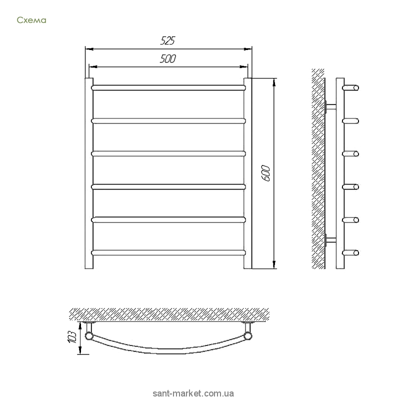 Електричний полотенцесушитель Laris Класик ЧФ6 Е 525x600х103 драбинка білий 75201009