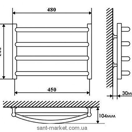 Електричний полотенцесушитель Laris Класик П4 Е 480x500х30 драбинка хром 73207001