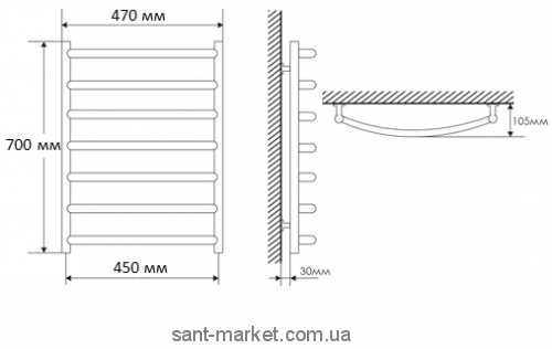 Електричний полотенцесушитель Laris Класик П7 Е 470x700х30 драбинка хром 73207004