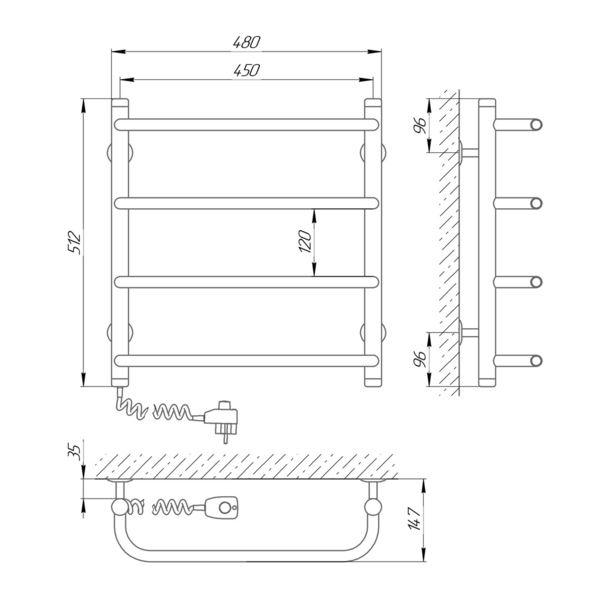 Електричний полотенцесушитель Laris Стандарт П4 Е 450x500 мм лівий