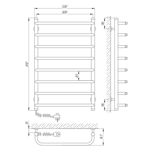 Електричний полотенцесушитель Laris Стандарт П8 Е 500x800 мм лівий 73207088
