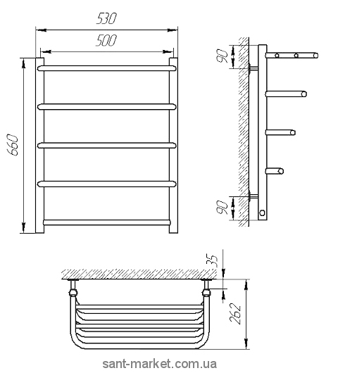 Електричний полотенцесушитель Laris Стандарт П5 Е з полицею 500x660х35 драбинка хром 71207610
