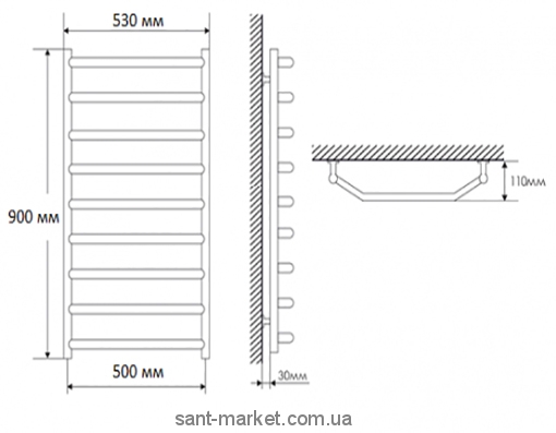 Електричний полотенцесушитель Laris Вікторія П9 Е 530x900х30 драбинка хром 73207078