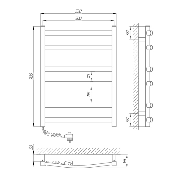 Електричний полотенцесушитель Laris Зебра Атлант ЧК6 Е 500x700 мм лівий