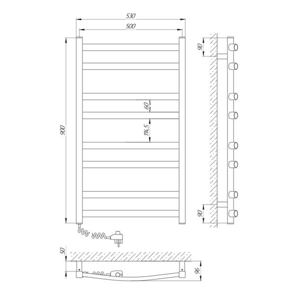 Електричний полотенцесушитель Laris Зебра Атлант ЧК8 Е 500x900 мм лівий