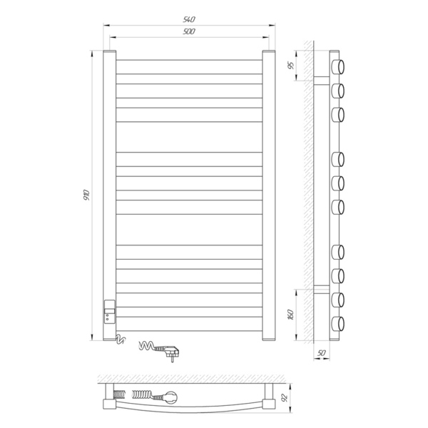 Електричний полотенцесушитель Laris Зебра Атлант Преміум ЧК10 Е 500x900 мм лівий