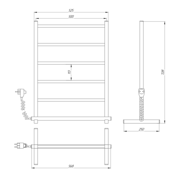 - Розміщення шнура: зліва / справа (повернути полотенцесушитель на 180 °)