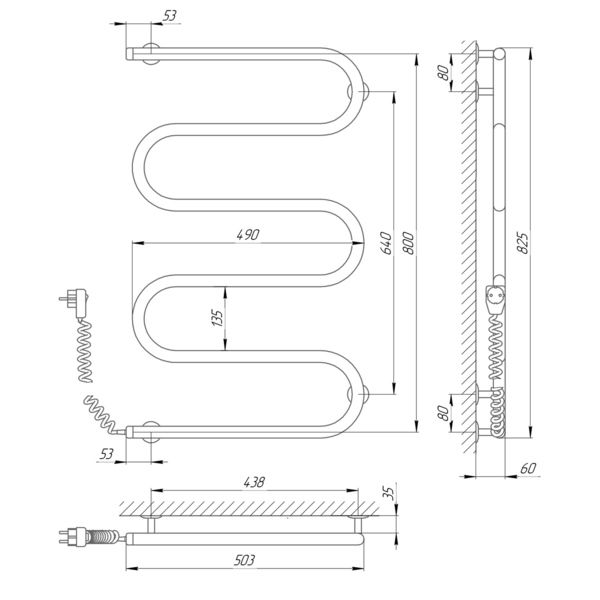 Електричний полотенцесушитель Laris Змійовик 25 РС5 Е 500x800 мм лівий