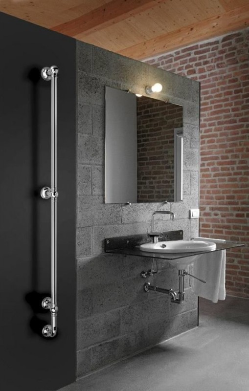 Полотенцесушитель електричний стаціонарний, обігрівається вішалка електрична для халата H.1650 мм у вигляді круглої латунної трубки Ø32 мм. Може кріпитися як вертикально, так і горизонтально.