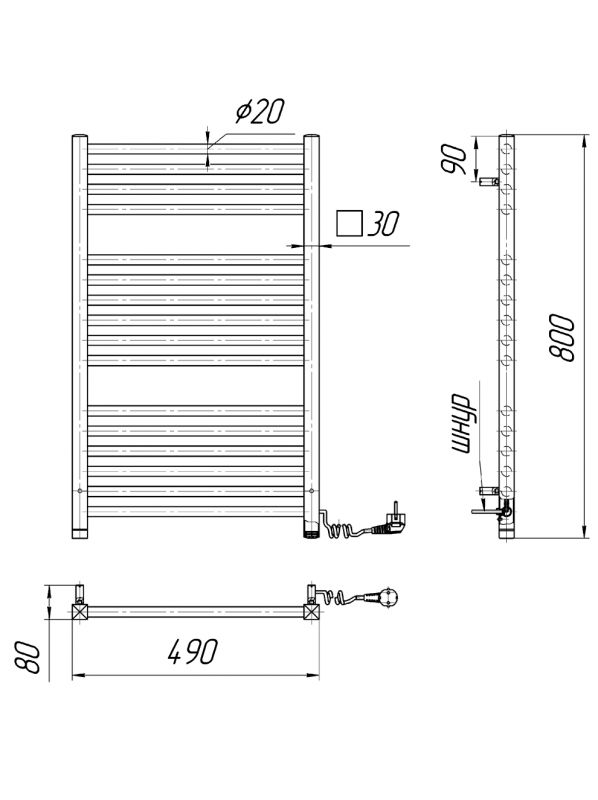 всередині полотенцесушителя протягнута нихромовая нитка, яка здійснює його нагрівання до температури 60 ° С