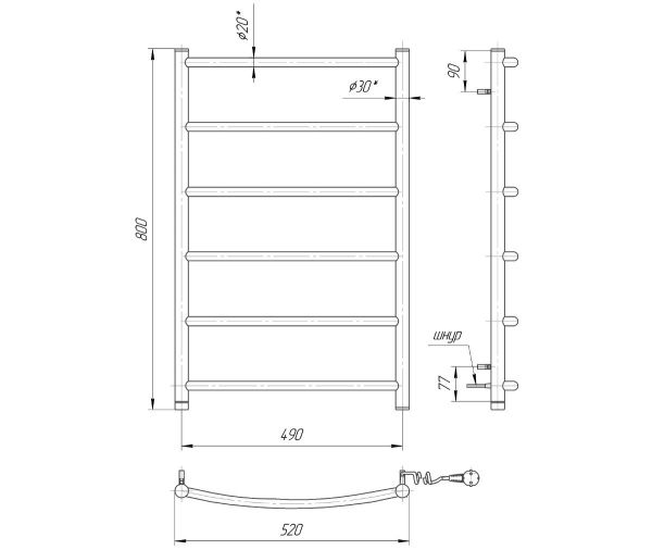 Електричний полотенцесушитель Mario Класик НР-IT 800х530 мм 4820111355105