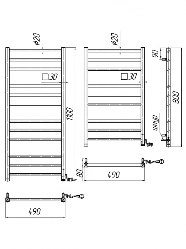 Електричний полотенцесушитель Mario Преміум Класик-I 1100x500 мм