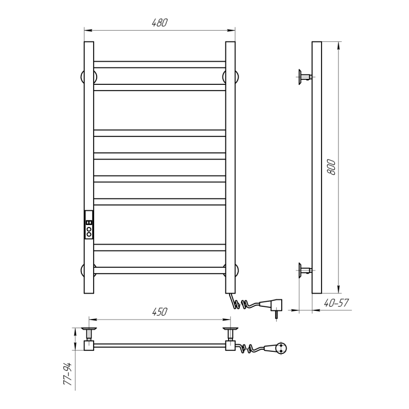 Електричний полотенцесушитель Navin Авангард правий 480х800 digital таймер вуглецева сталь білий