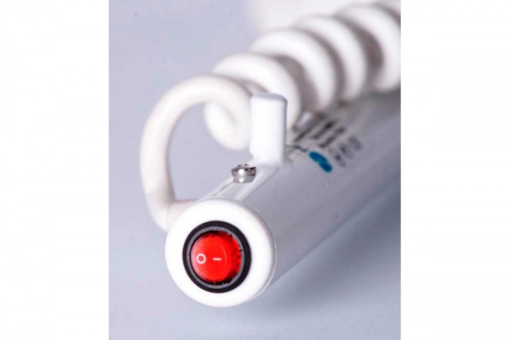 Кнопка включення має індикаторну підсвічування і знаходиться на самому виробі. Полотенцесушитель оснащений високо-технологічним саморегульованим нагрівальним кабелем, виробництва NAVIN. Нагрівальний кабель є одним з кращих в світі - в період виробництва і продажів наших виробів з 2010 року - не було жодного випадку виходу з ладу нагрівальногоелемента.