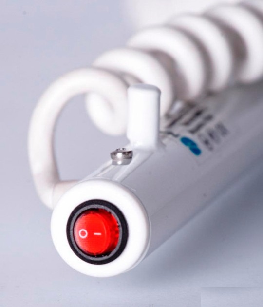 Кнопка включення має індикаторну підсвічування і знаходиться на самому виробі. Полотенцесушитель оснащений високо-технологічним саморегульованим нагрівальним кабелем, виробництва NAVIN. Нагрівальний кабель є одним з кращих в світі - в період виробництва і продажів наших виробів з 2010 року - не було жодного випадку виходу з ладу нагрівального елементу.