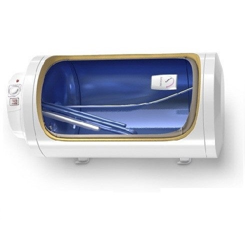 - наявністю сухого нагрівального елементу, який складається з двох нагрівальних елементів, виконаних з нержавіючої сталі, поміщених в ізольовану колбу з склокерамічним покриттям. Сухий нагрівальний елемент не має прямого контакту з водою, а колба має низьку поверхневою температурою, що знижує відкладення накипу на його поверхні, а значить продовжує термін службинагрівального елементу;