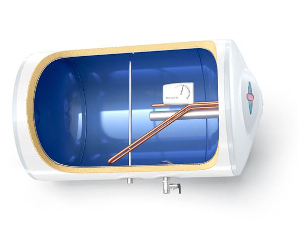 Недорогий, але досить якісний бойлер сімейства Tesy. Бак встановлюється горизонтально, що зручно в умовах обмеженого місця, тому бойлер можна повісити під стелею в будь-якому приміщенні. Матеріал корпусу виконаний зі сталі, має внутрішнє антибактеріальне покриття, що перешкоджає розмноженню мікроорганізмів. Приєднувальні патрубки знаходяться збоку, але при горизонтальному розташуванні бака вони будуть знизу. Панель управління в цьому випадку буде перебувати праворуч. Також передбачена система безпеки: зворотний клапан, запобіжник і дублюючий термостат. Захисний магнієвий анодпротидіє утворенню накипу на стінках бака і Тене. Коли включається ТЕН, загоряється світловий індикатор, що сигналізує про нагрів води. Покращена теплоізоляція з екструдованого поліуретану, що дозволяє економити до 17% електроенергії.