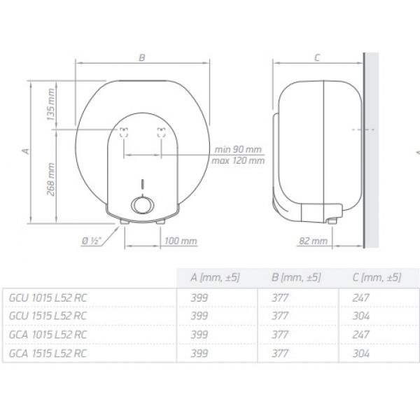 За рахунок своїх компактних розмірів цей тип бойлера ідеально підходить для установки на кухні або в місцях громадського харчування. Підводка води здійснюється зверху, ручка регулятора температури для зручної експлуатації бойлера розташована на самому корпусі. Укомплектований шнуром з вилкою, тому його підключення не вимагає спеціальних навичок і досвіду електромонтажу. Завдяки компактним розмірам електричний бойлер Tesy GCU 1515 L52 можна безперешкодно встановити всередині тумби під умивальником, або розташувати його під раковиною, а зручна і функціональна панель для управління і регульований термостат гарантованоподарують задоволення від покупки цього бойлера!