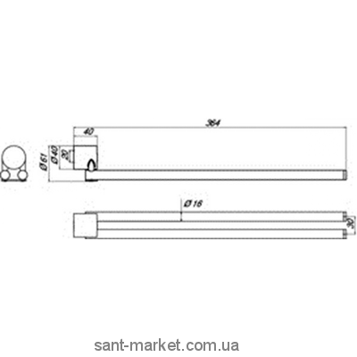 Призначення: Рушникотримач ріжковий 364 мм
