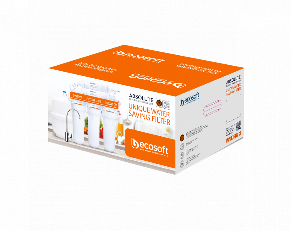 Унікальна модель фільтра зворотного осмосу Ecosoft Absolute з мінералізатором не тільки збагачує воду корисними мінералами, але також забезпечує економне споживання води.