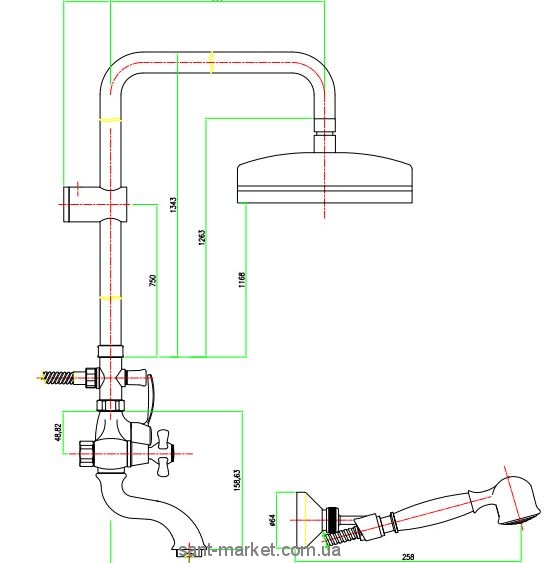 Душова колона в ретро стилі, з ручним і верхнім душем 200мм.