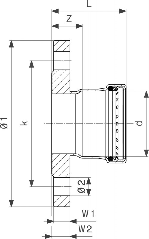 1) Фланцевий перехід Viega Sanpress Inox G 0259XL з SC-Contur DN80 (88,9мм) нержавіюча сталь