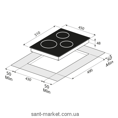 Розміри ніші для вбудовування (ВхШхГ) 4х49х43 см