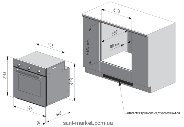 Висота ніші для вбудовування, див: 60