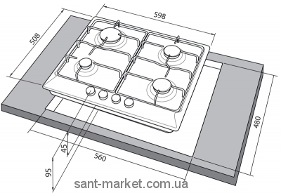 Розміри ніші для вбудовування (ШхГ) 4,5х56х48 см