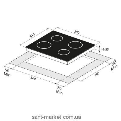 Розміри ніші для вбудовування (ВхШхГ) 4,4-5,5х56х49 см