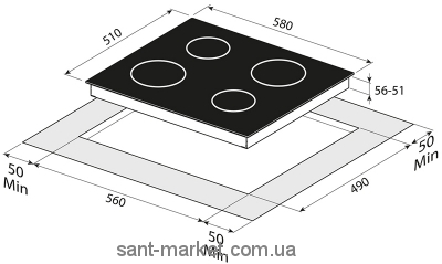Розміри ніші для вбудовування (ВхШх ) 5,1х56х49 см