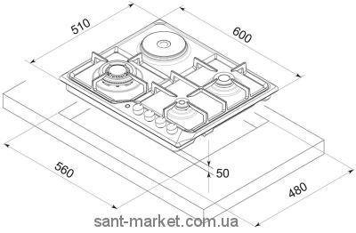 Розміри ніші для вбудовування (ШхГ) 5х56х48 см