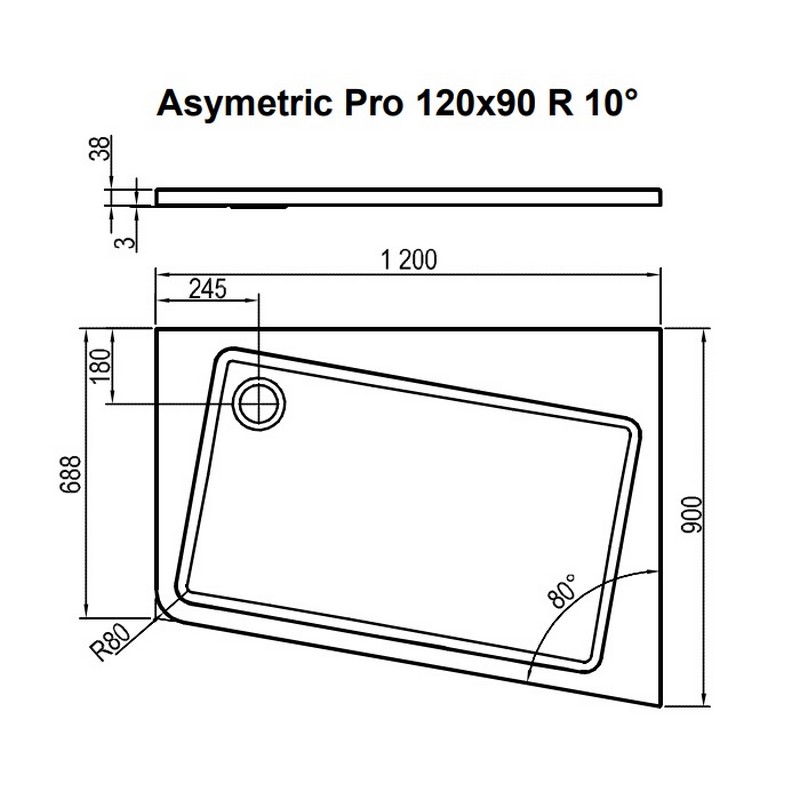 1) Фронтальна панель для піддону Ravak Asymetric Pro 120x90 SET R 10 ° біла