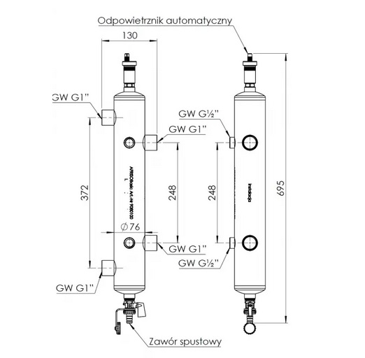 Гідравлічні роздільники BLH використовується для поділу джерела тепла та контурів системи опалення.< /span> Використання гідравлічного роздільника в системі забезпечує поділ контурів насоса джерела тепла та контурів опалювального насоса. Це дозволяє забезпечити належні гідравлічні умови для циркуляційних насосів, врівноважуючи потоки. Це гарантує безперебійну роботу системи та джерел тепла при відключеннідеяких споживачів тепла і збільшує термін служби циркуляційних насосів. jCAhz">завдяки своїй конструкції та властивостям також виконує функцію сепаратора повітря, що видаляється через автоматичний розподільник у верхній частині роздільника, та сепаратора бруду, який накопичується у нижній частині роздільника і може бути видалений за допомогою зливного крана.