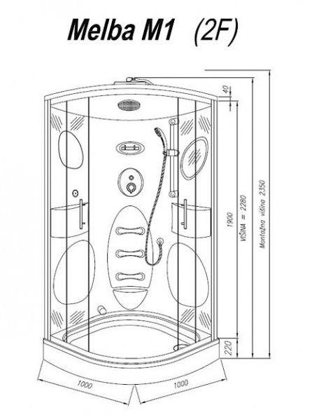 Масажна кабіна з паровою сауною Melba M1 включає:
