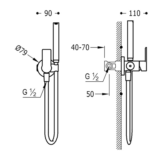 Комплект складається з одноважільного змішувача і душа з запірним клапаном на рукоятці, розташовується близько унітазу і може виконувати функцію біде.