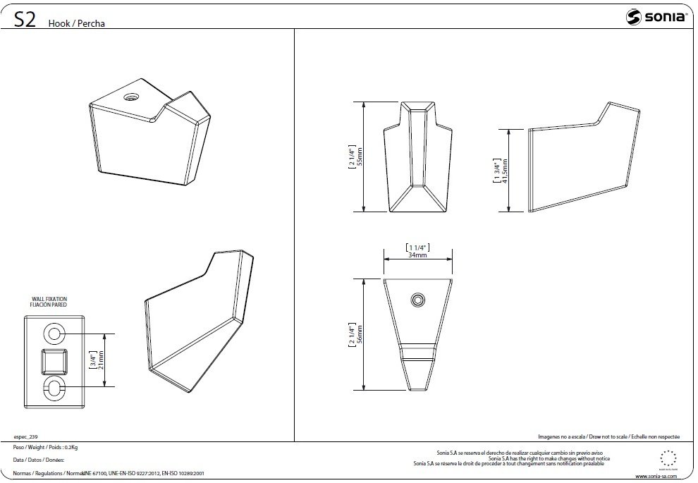Sonia - аксесуари для ванної кімнати з Іспанії. Гачок для рушника з колекції S8-SWK - невеликий, але незамінний атрибут ванної кімнати, розрахований для 1 рушники. Такі аксесуари нерідко можна побачити в готелях і салонах краси. Гачок входить до професійної серію аксесуарів, що підходять для комерційних приміщень, але хто сказав, що гачки S8-SWK не можна використовувати для дома!