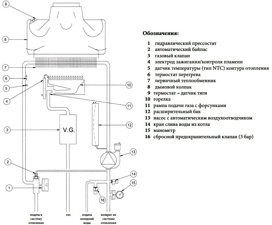 - Первинний мідний теплообмінник, покритий спеціальним складом для додаткового захисту від корозії;