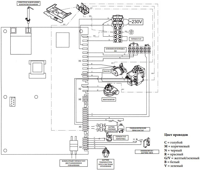 - Захисний термостат від перегріву води в первинному теплообміннику;
