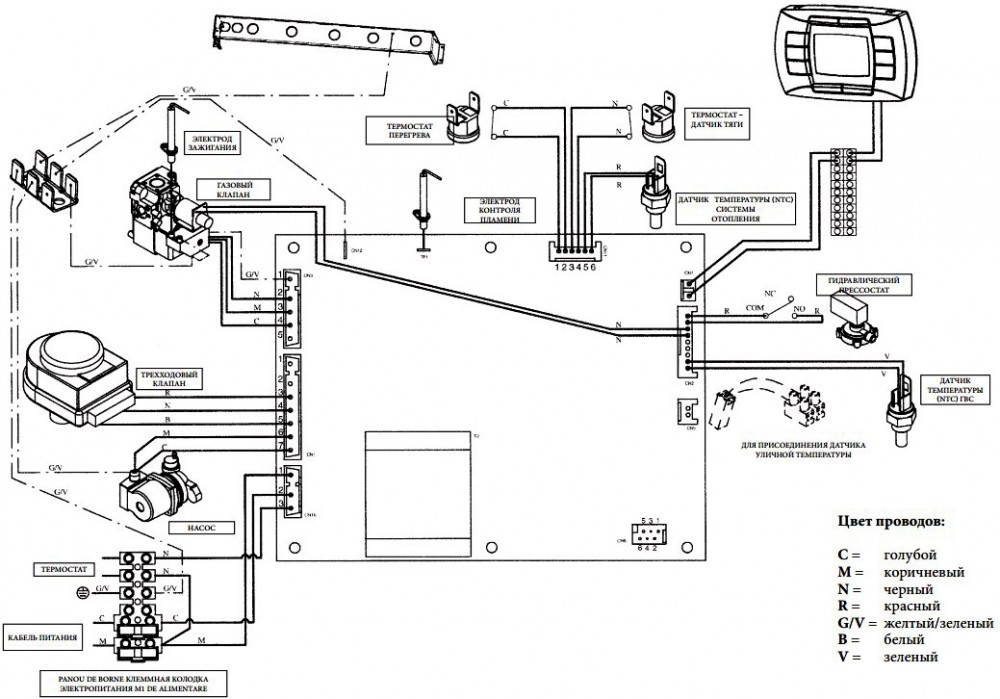 - Датчик тяги для контролю за безпечним видаленням продуктів згоряння (пневмореле - для моделей із закритою камерою, термостат - для моделей з відкритою камерою);