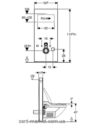 • 2 різьбові шпильки М12 для кріплення санфаянсу