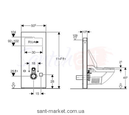• 2 різьбові шпильки М12 для кріплення санфаянсу