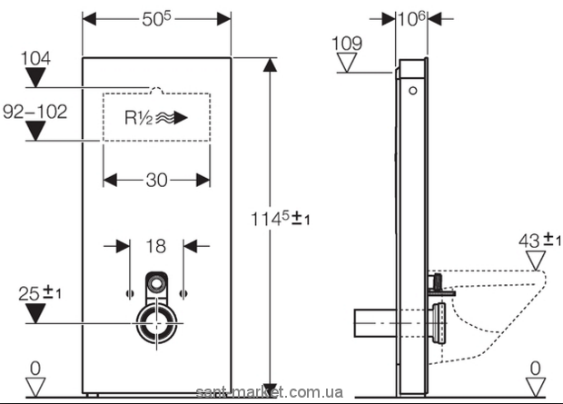 • 2 різьбовішпильки М12 для кріплення санфаянсу