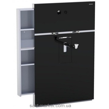 Geberit Monolith монтажний модуль для умивальника з настінним смесітем, вентиль 8cm, висувний ящик зліва, чорне скло