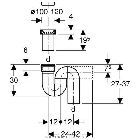 S-подібний сифон для чаші Генуя, горизонтальний випуск