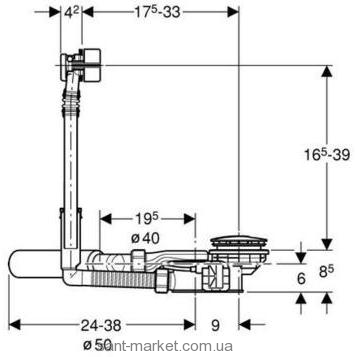 Geberit Сифон для ванни стандартної слив-перелив 150.910.00.1
