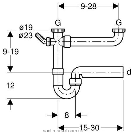 Geberit Сифон на 2 зливні отвори 152.717.11.1