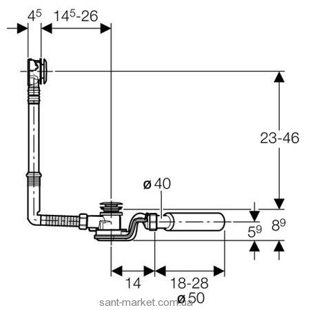 Характеристика зливу-переливу для ванни Geberit 150.755.45.1: