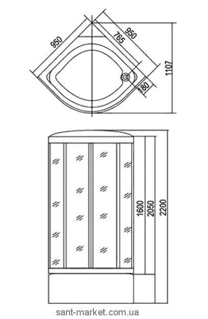 Гідробокс кутовий Appollo TS-49W 95x95x220 з глибоким піддоном чверть кола